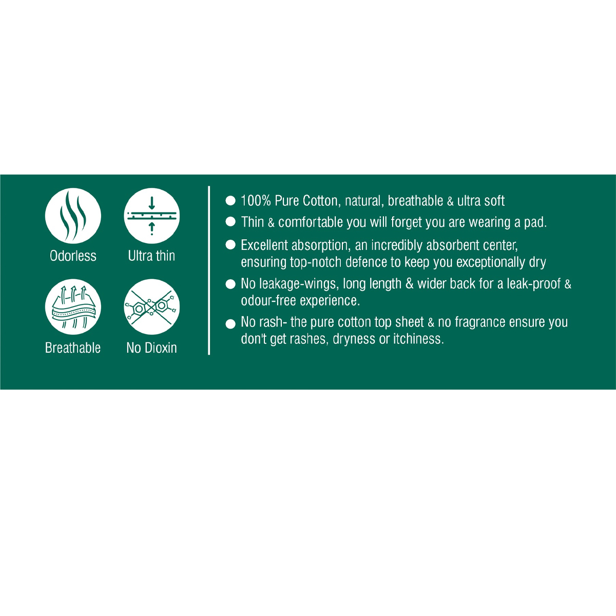 100% pure ,cotton,natural,breathable and ultra soft.Thin and comfortable you will forget you are wearing a pad.