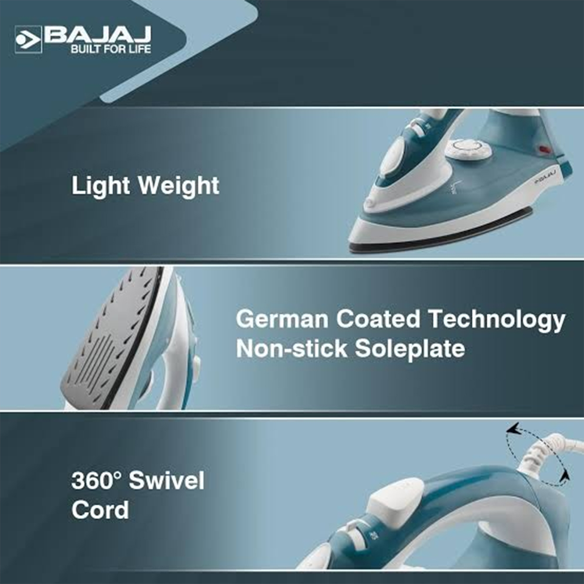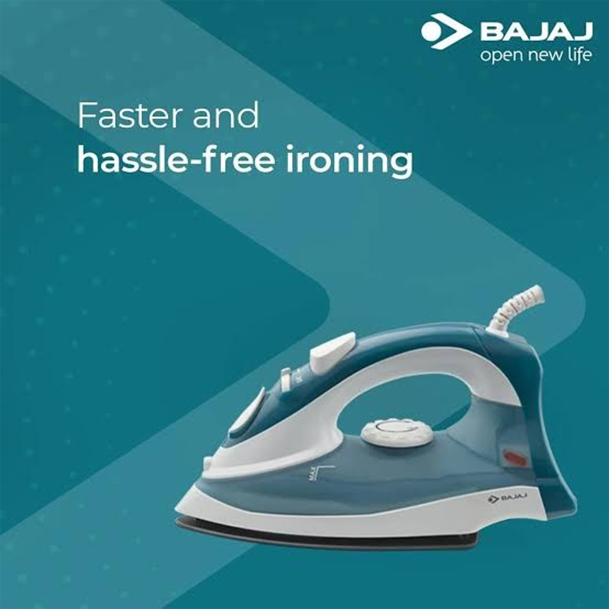 Bajaj MX 3 Neo steam iron. power output of 1250 watts for fast heating.