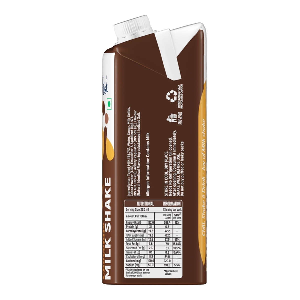 Milky Mist Chocolate Milk Shake: 220 ml Volume:220 ml
